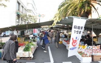 高知の城下町を東西に走る「追手筋(おうてすじ)」にて毎週日曜日に開催されている街路市。日の出から日没まで開かれており、食品から日用雑貨、骨董品など多種多様な高知の特産品・名品に巡り合えます。