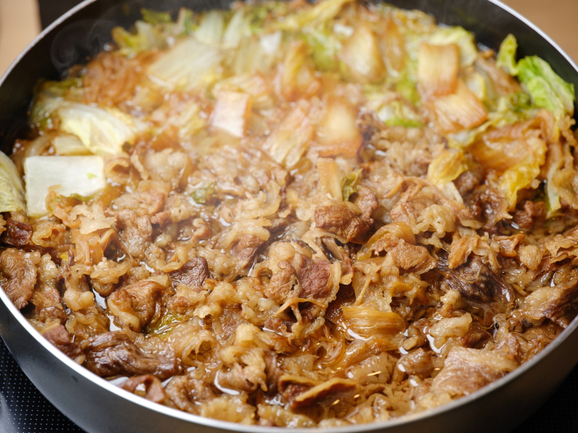 「国産牛のすき焼き」は一緒にご用意いたします温泉卵を絡めていただくと