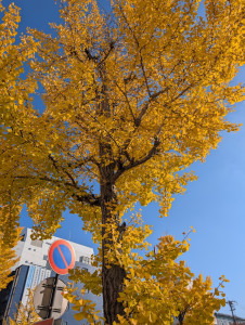 先月まで青かった葉っぱが綺麗な黄色に色づきました。
