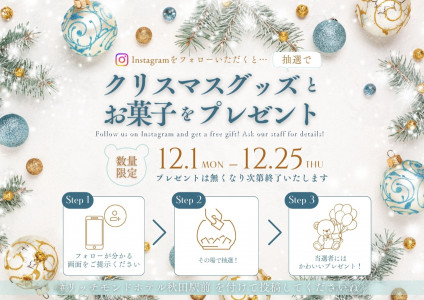 【参加条件】開催期間中にリッチモンドホテル秋田駅前にご滞在していること及び、リッチモンドホテル秋田駅前の公式Instagramをフォローしていること