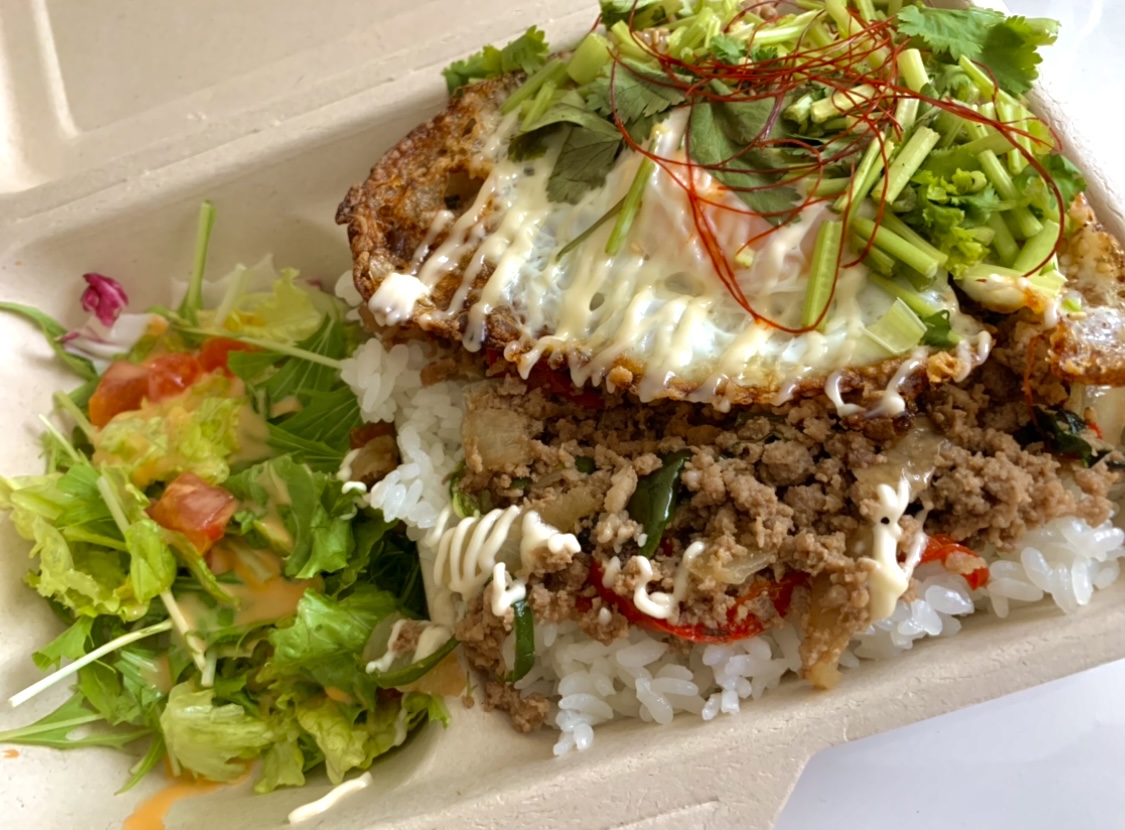早速ですが今回ご紹介させていただくグルメは、青森市古川にある「PENT HOUSE」のテイクアウトです。私は大好きなガパオライスをパクチー増量でデリバリー注文しました。