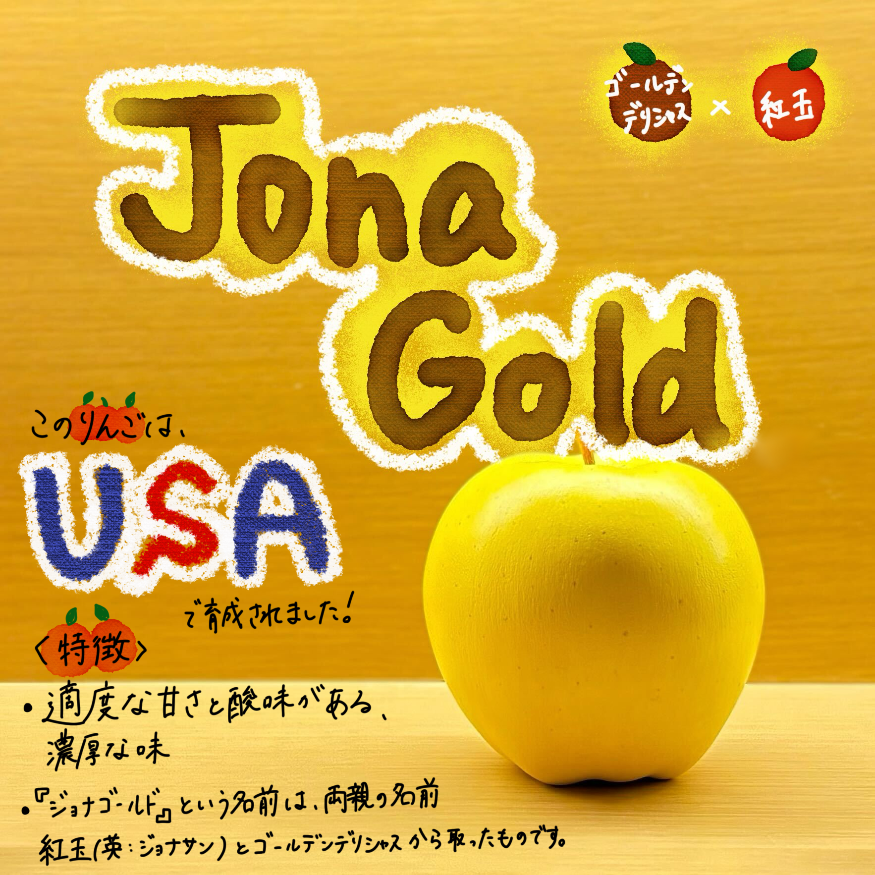 (母)ゴールデンデリシャス×(父)紅玉から生まれた「ジョナゴールド」。