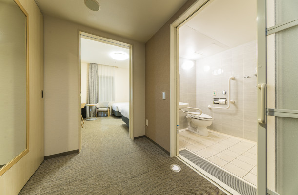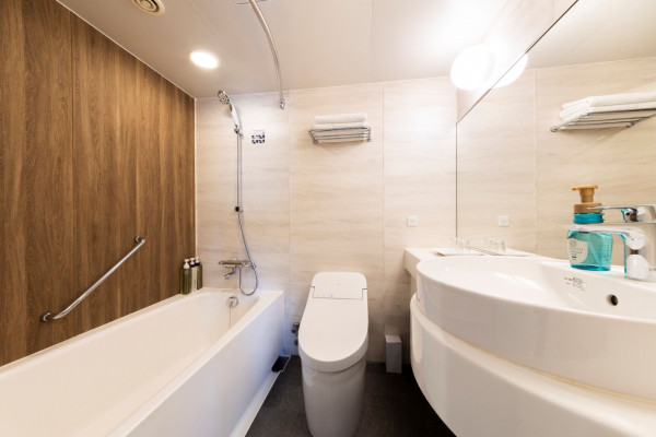 個別空調設備(冷暖房 客室にて切替自由) / 客室内照度240LUX / 携帯充電器 / 有線LAN対応 / 浴室 / 曇り止め鏡 / 卓上鏡(折り畳み) / 毎日洗いたてスリッパ