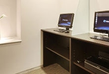 PCや書類を広げても圧迫感のない広いデスクと、全室個別の高速フリーWi-Fi(実測100Mbps以上)をご用意しております。 お仕事でご利用される場合にも最適な環境をご用意しております。
