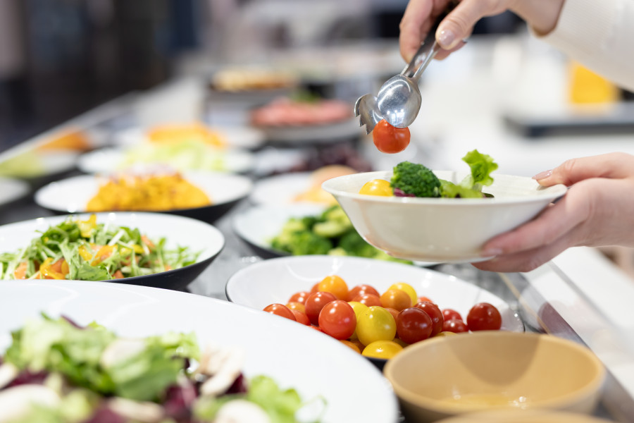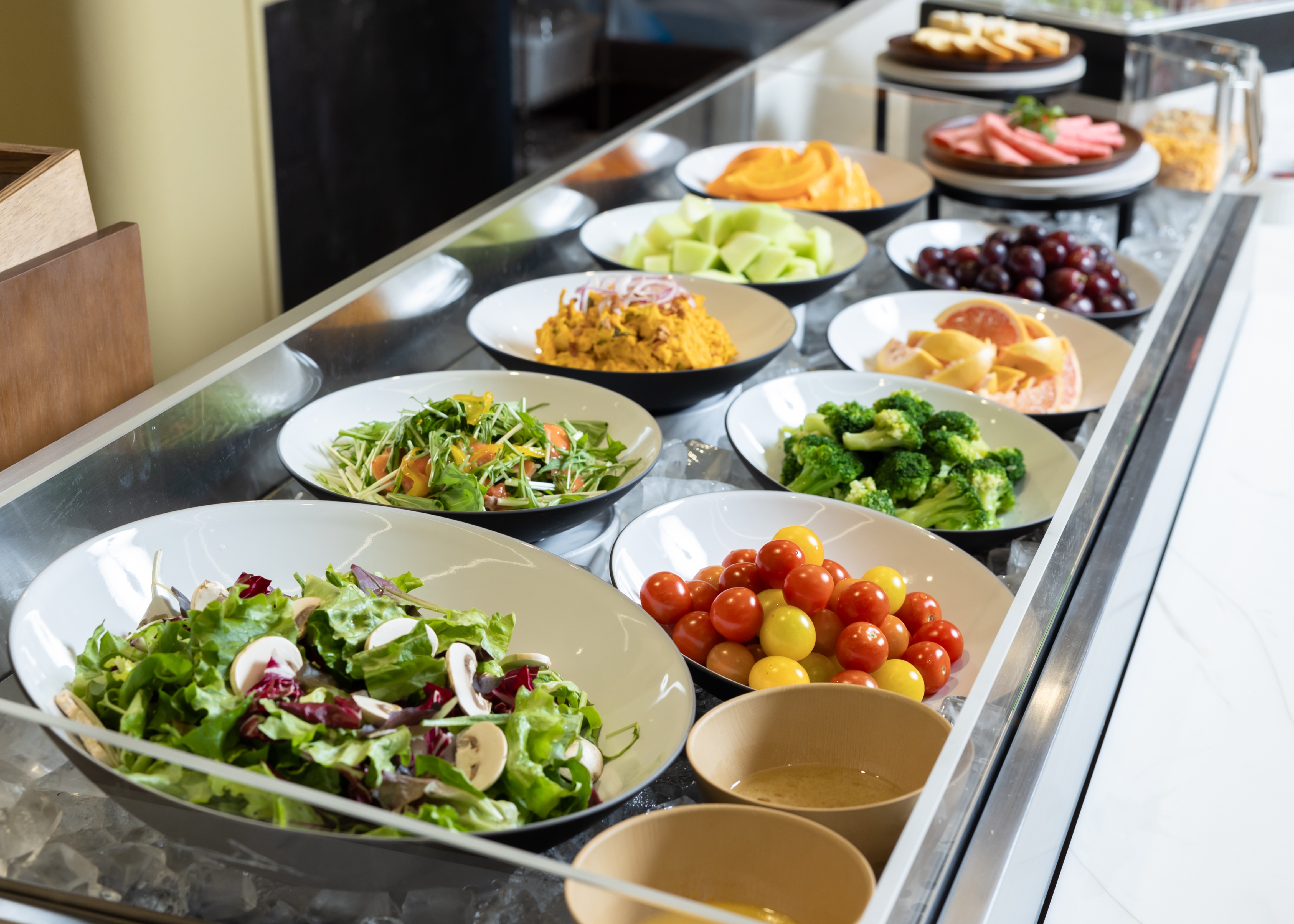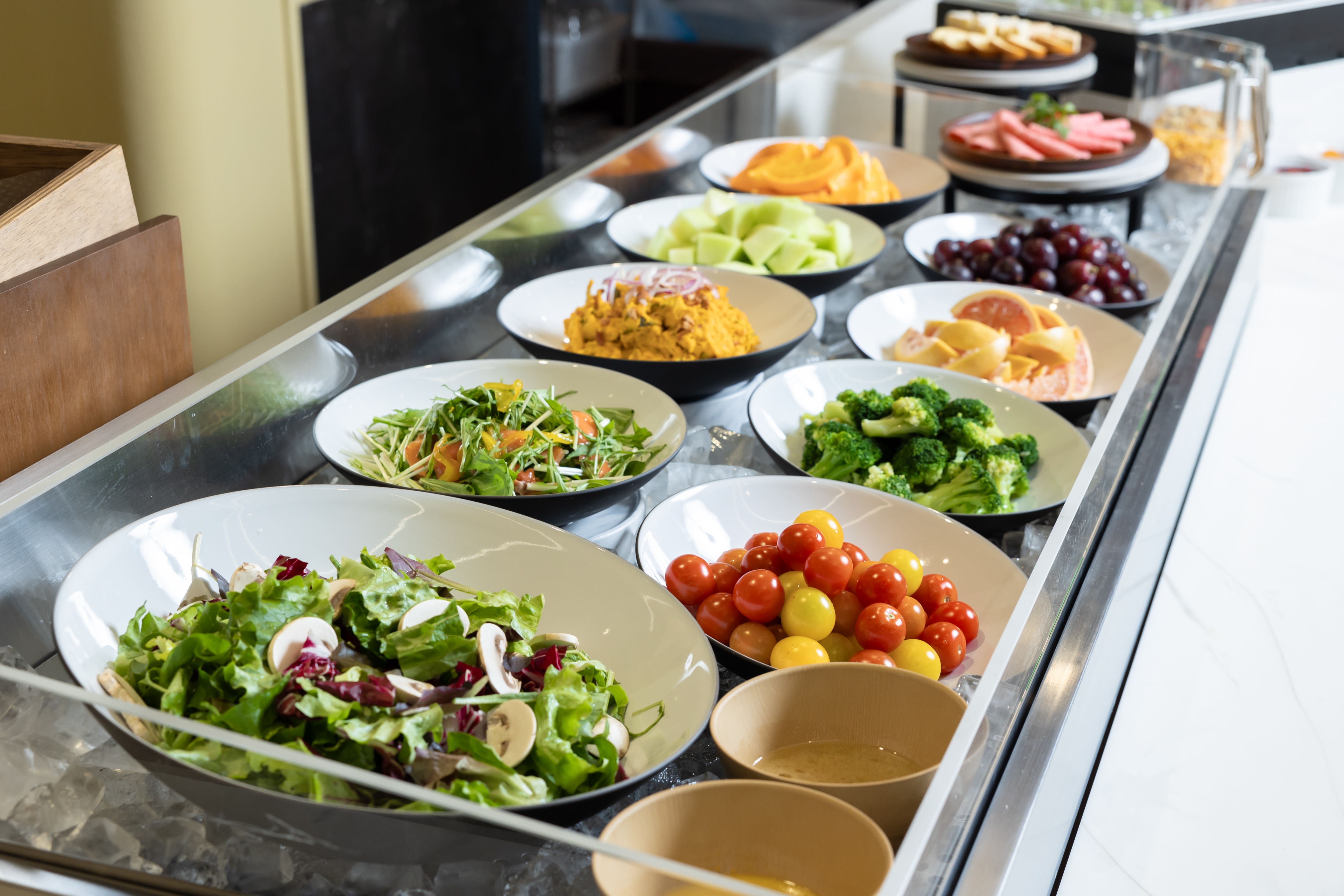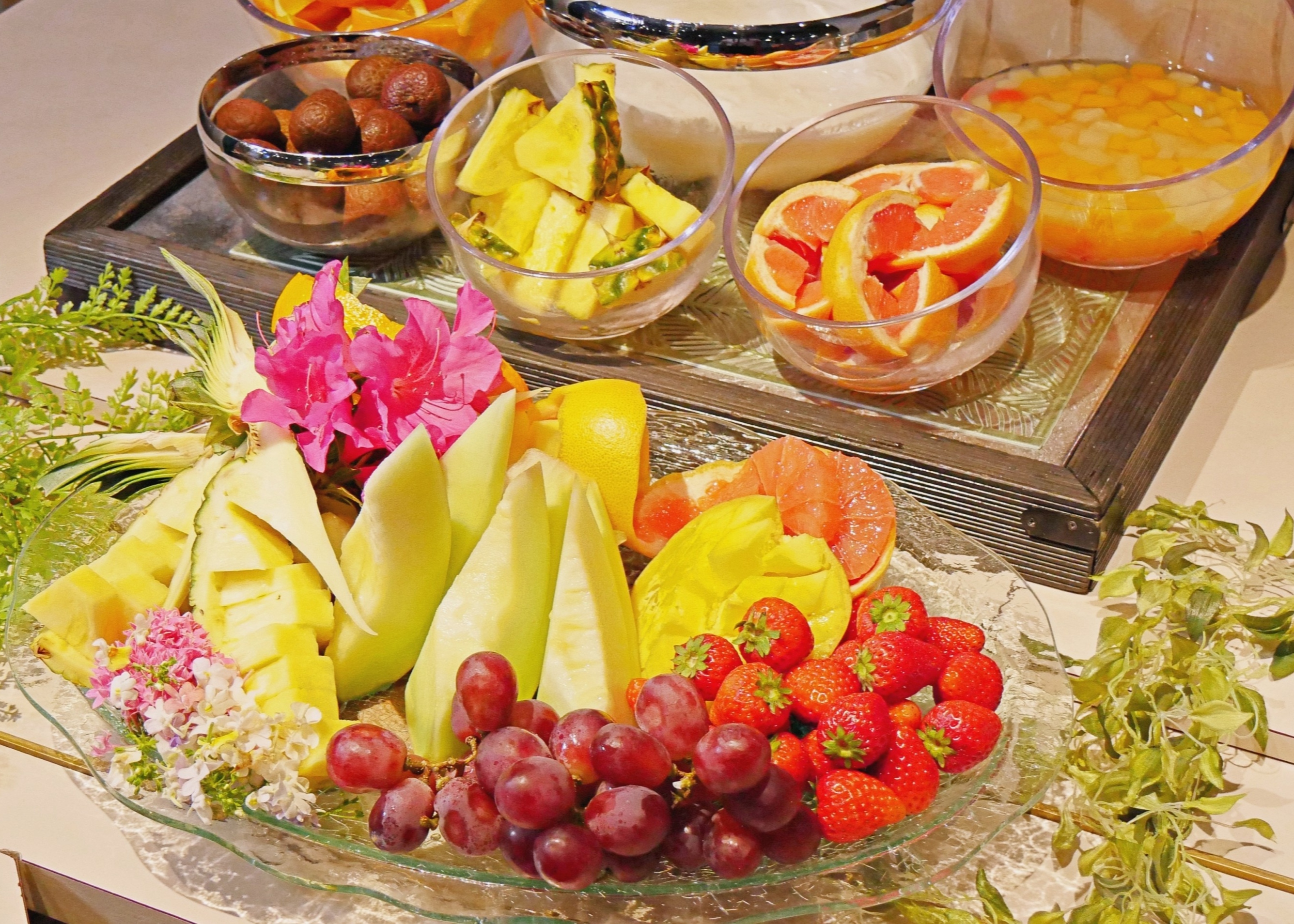 ・テーブル、椅子、 ビュッフェレーンの什器、機器等は都度アルコール消毒をしております。