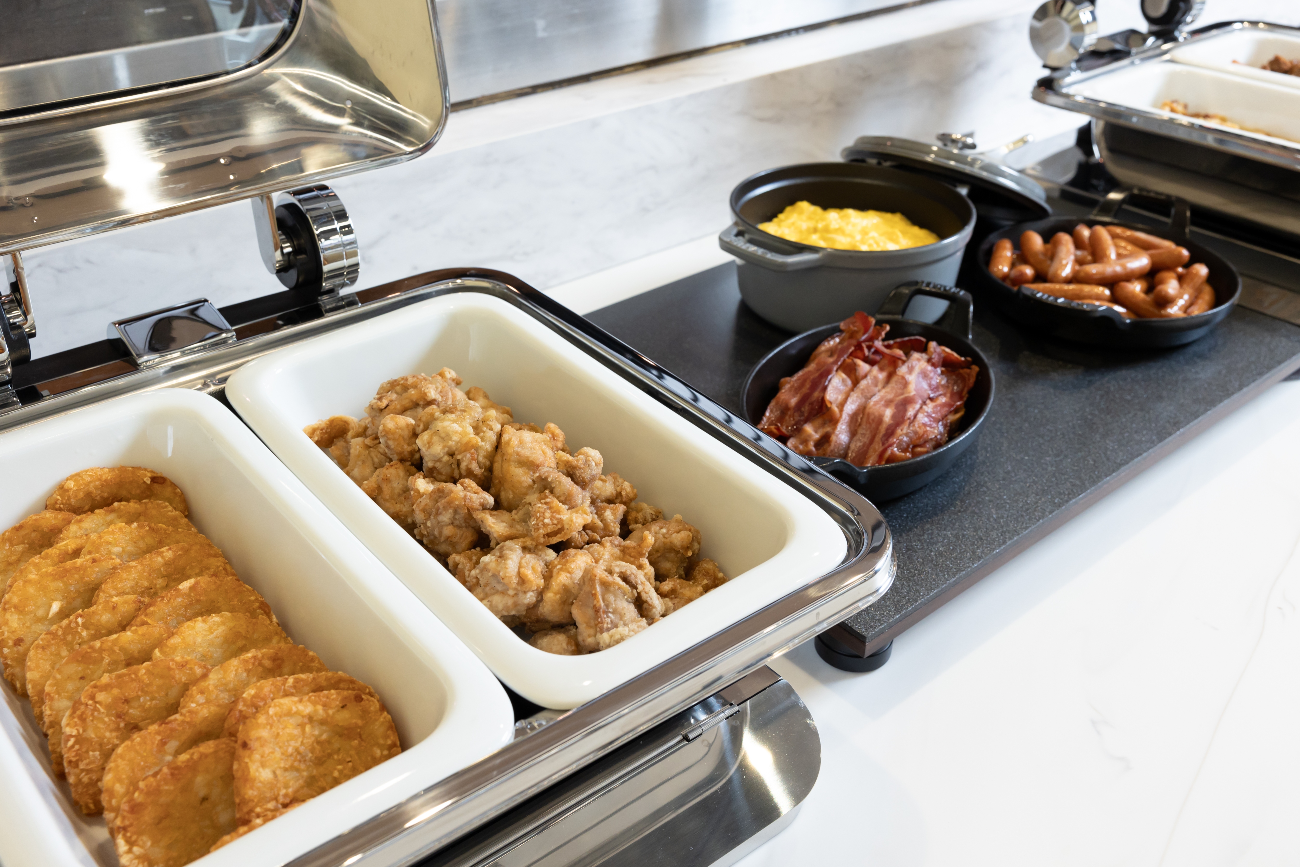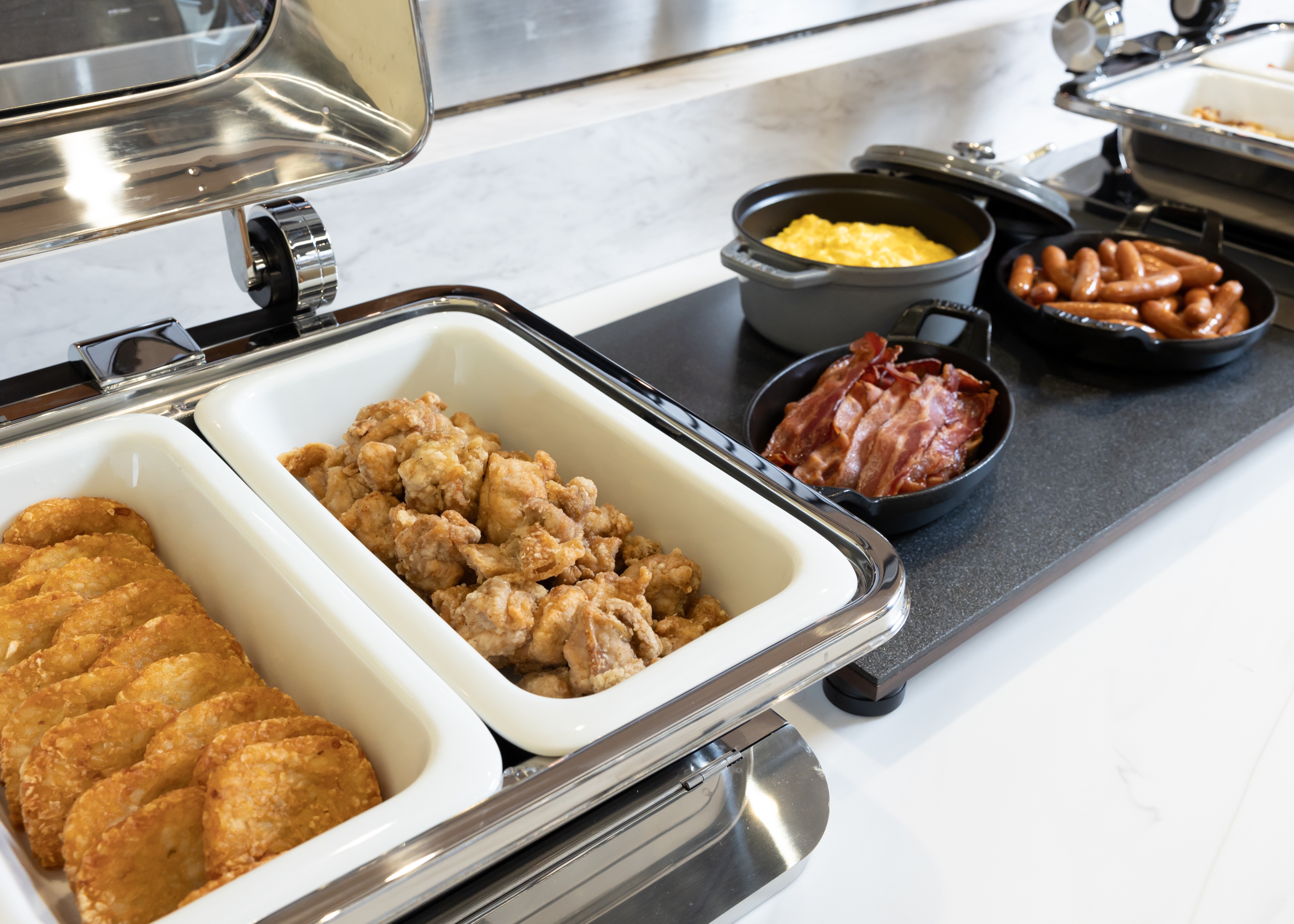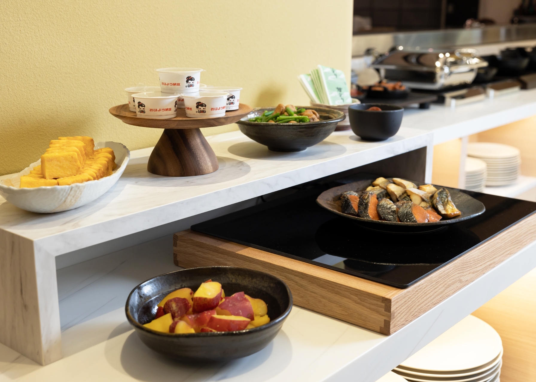 人気の牛すじ大根、マグロ漬け等、和洋折衷のメニューを約60品目ご用意しております。充実した一日のはじまりにぴったりの朝食をお楽しみください。