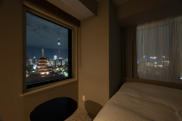 客室フロアは7階以上。浅草の街並みを一望できる眺望の良いお部屋です。東京スカイツリー®、浅草寺五重塔もご覧いただけるお部屋もございます。