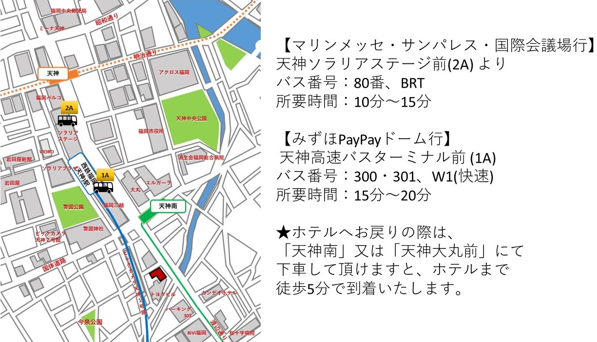 福岡市営地下鉄・七隈線『天神南駅』徒歩3分。福岡市営地下鉄・空港線『天神駅』徒歩10分。西鉄天神高速バスターミナルより徒歩5分。
