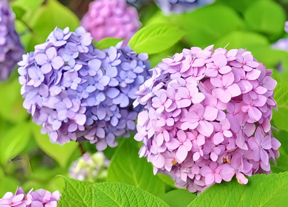 私どものホテルの周りには、極楽寺や敷地里山公園といったあじさいの名所が数多くあり、6月が咲き頃です。多種多様な品種があり、雨にしたたり美しく咲きます。