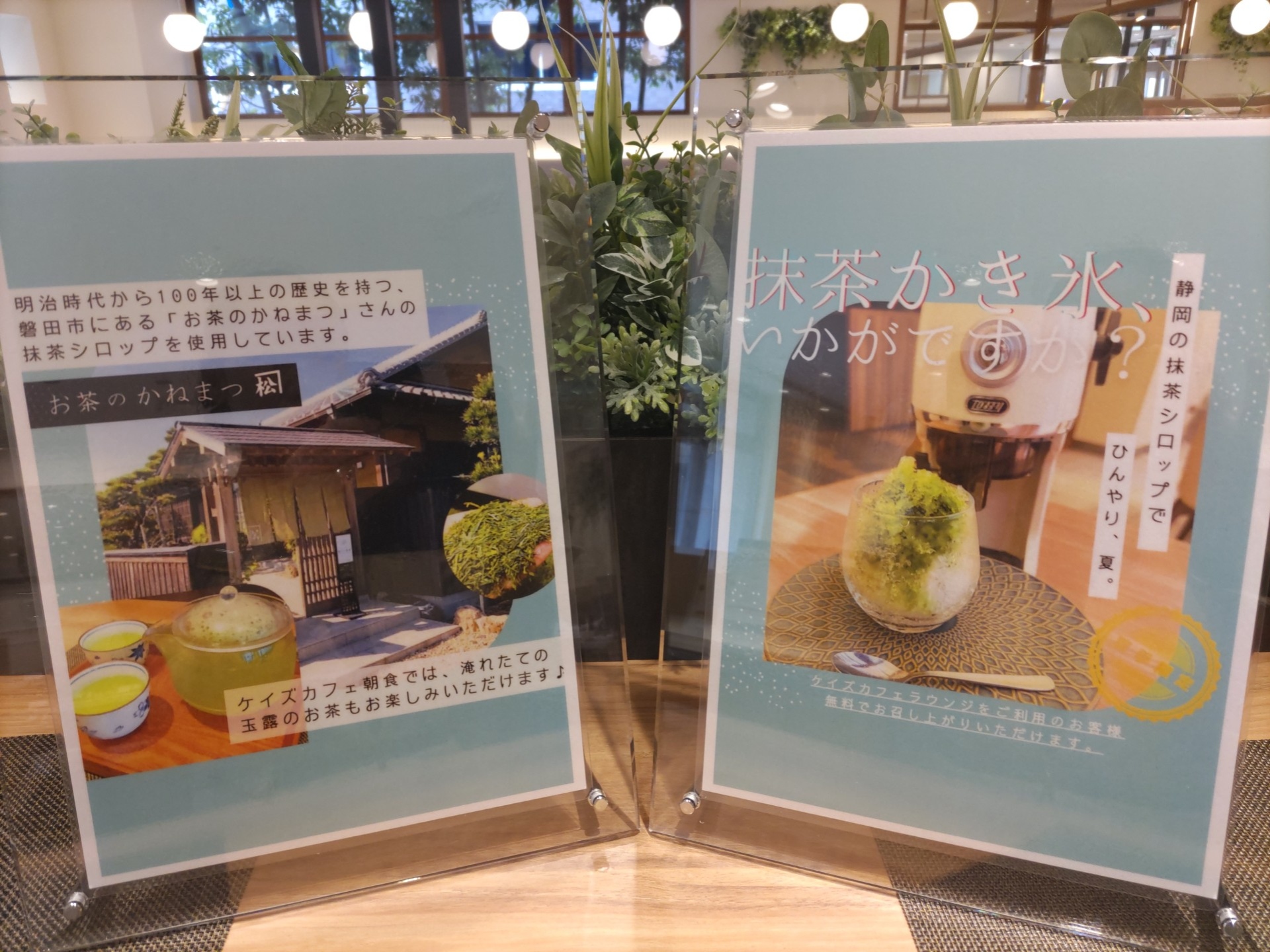 私どものホテル1Fラウンジにて、磐田市にある「お茶のかねまつ」さんの抹茶シロップを使ったかき氷の提供を、夏季限定で始めました。