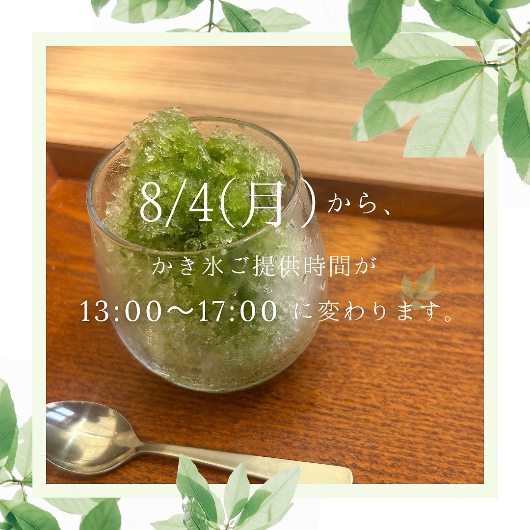 8月は、以下の通りかき氷の提供時間が変わりますのでご了承くださいませ。