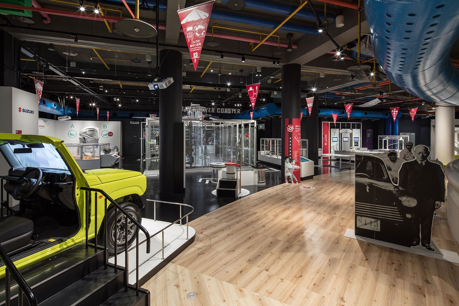 ・浜松を拠点とする、世界的に有名なメーカーによる協力展示やその創業者の等身大パネルを展示