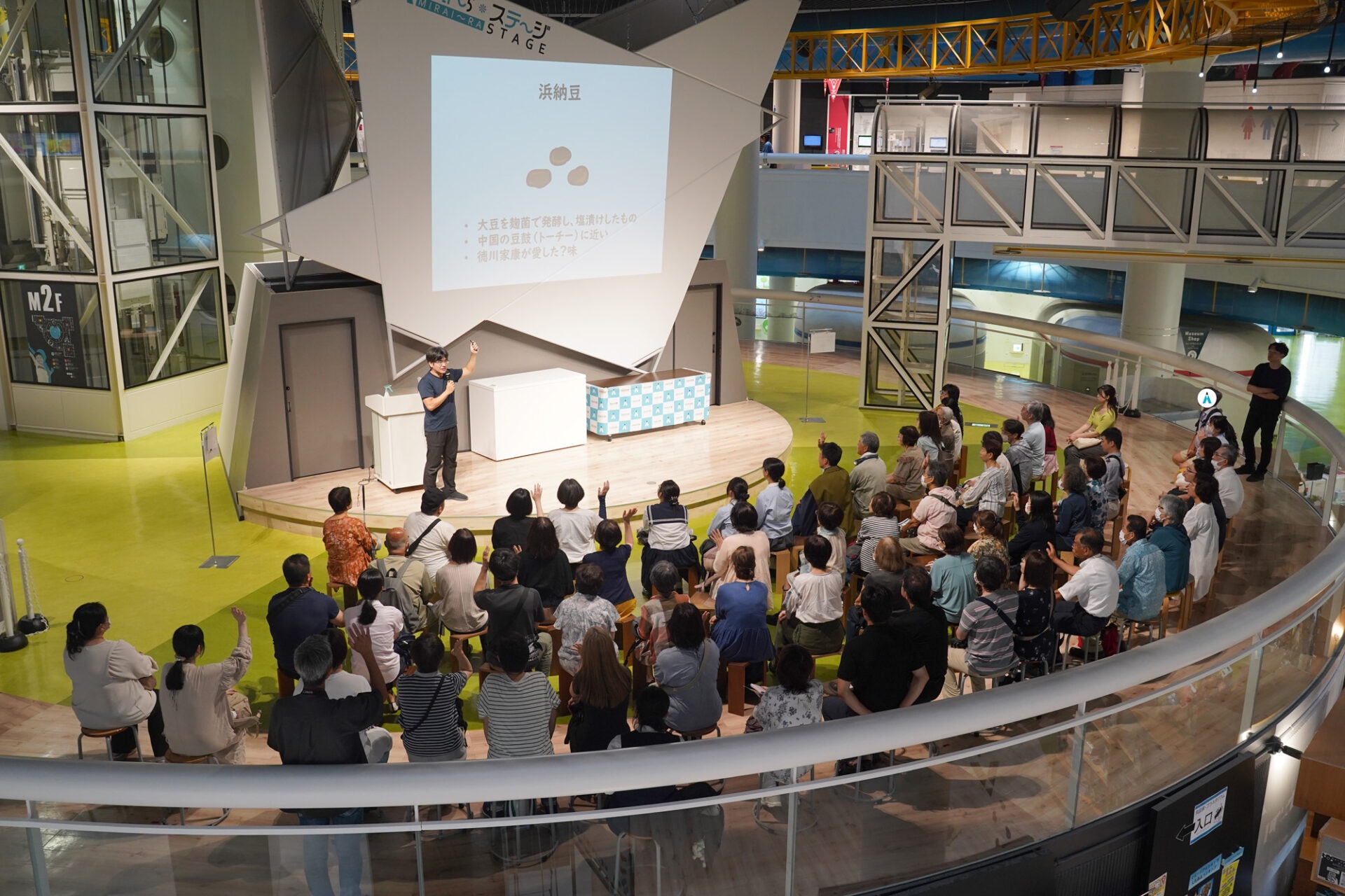 お客様もまじえて一体感ある魅力的なスペースで学芸員スタッフが実験をおもしろおかしく解説してくれます。