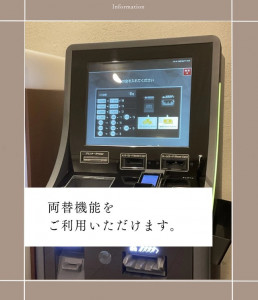 当ホテルでは、一階ロビーの精算機にて両替することができます。