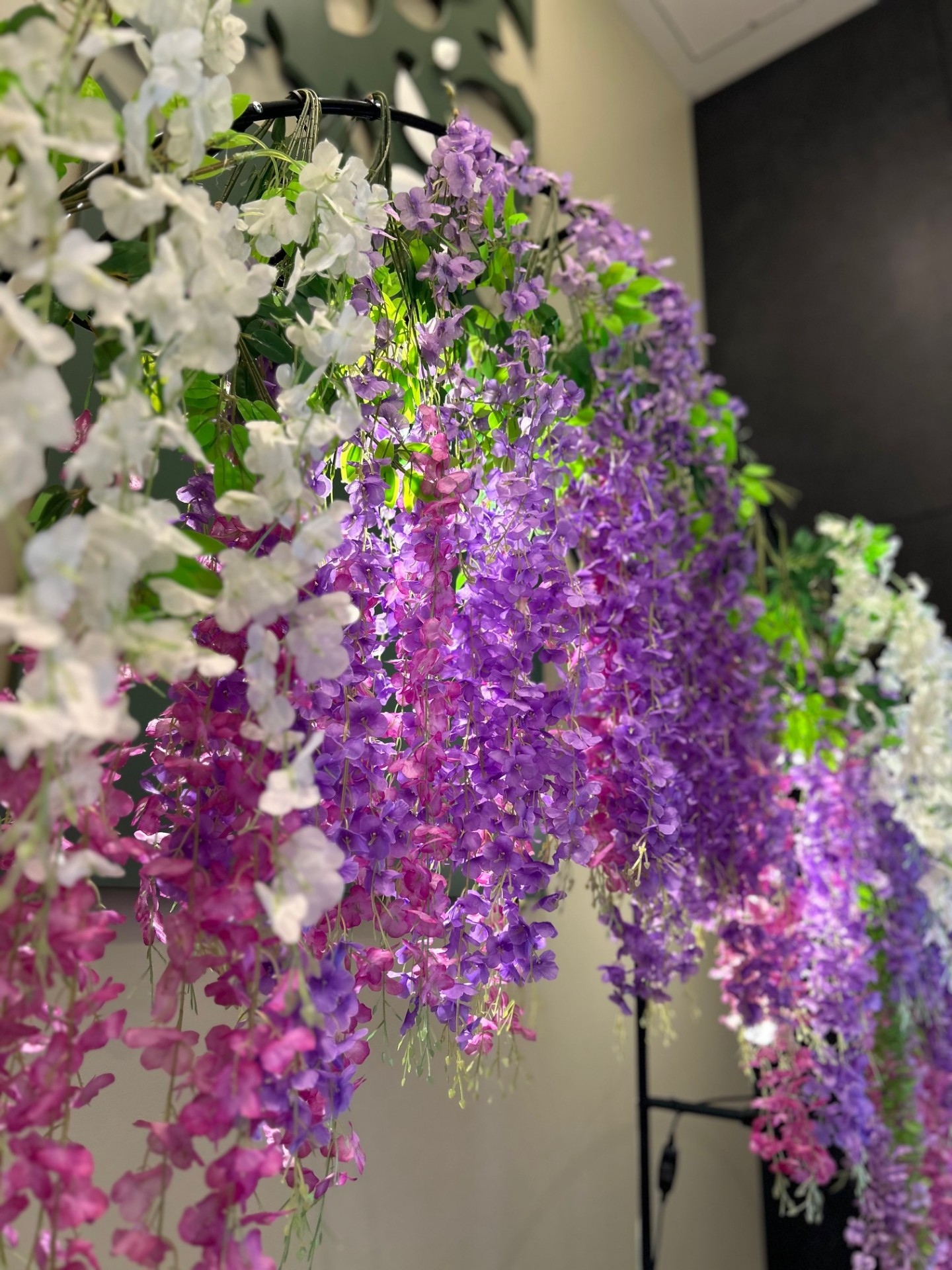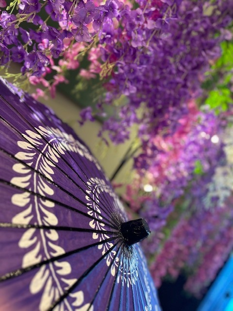 In the lobby of our hotel, beautiful wisteria flowers—at their best from mid-April to mid-May—are currently welcoming our guests. 🌸