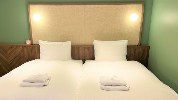 ホテル最大の29㎡のお部屋に110cm幅のベッドを2台ご用意しております。