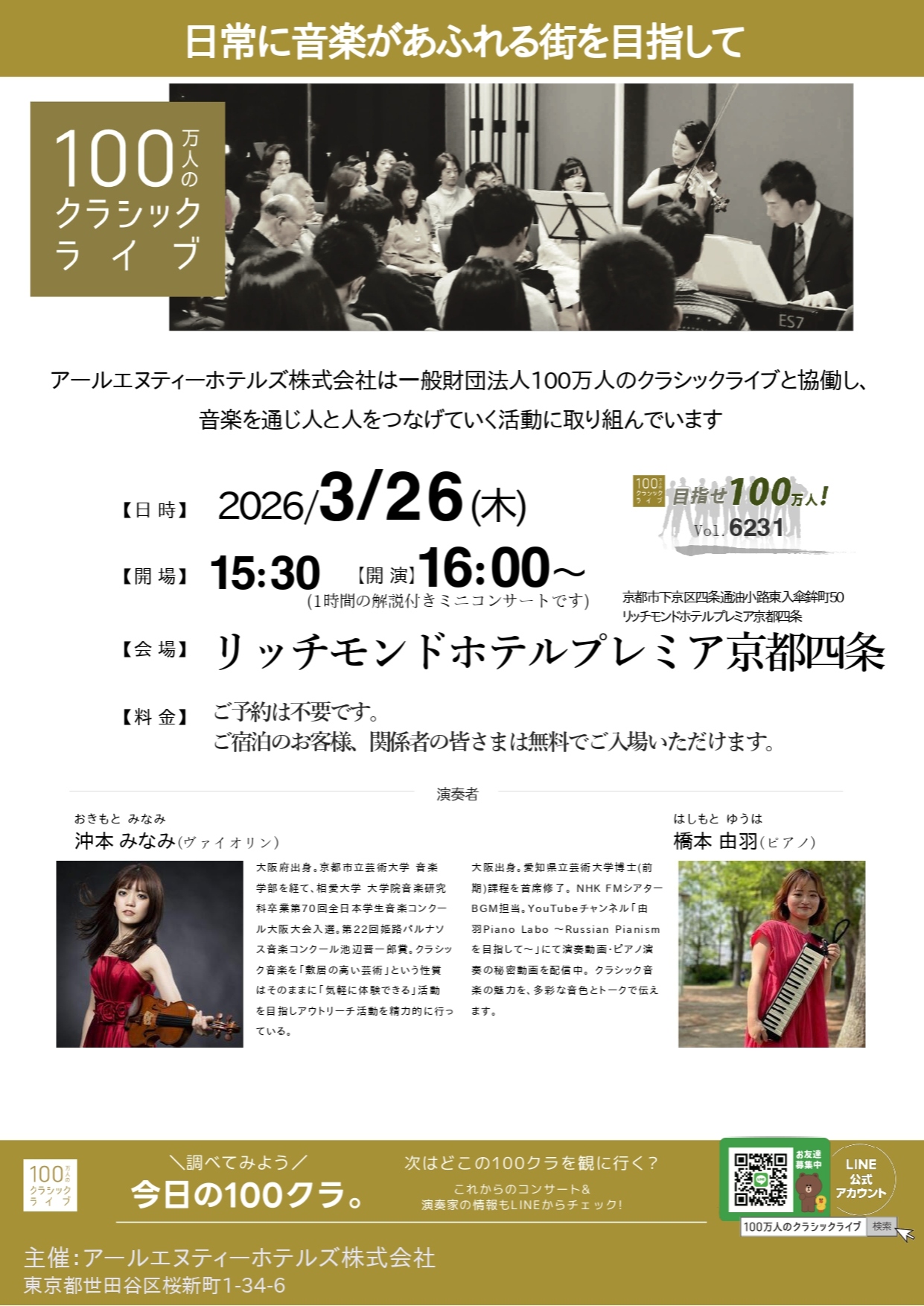 100万人のクラシックライブ×リッチモンドホテルプレミア京都四条 開催決定!!
