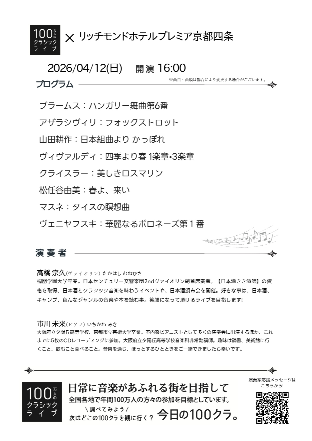 - 4月12日~100万人のクラシックライブ開催のお知らせ~