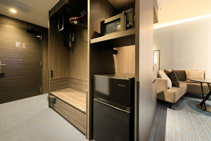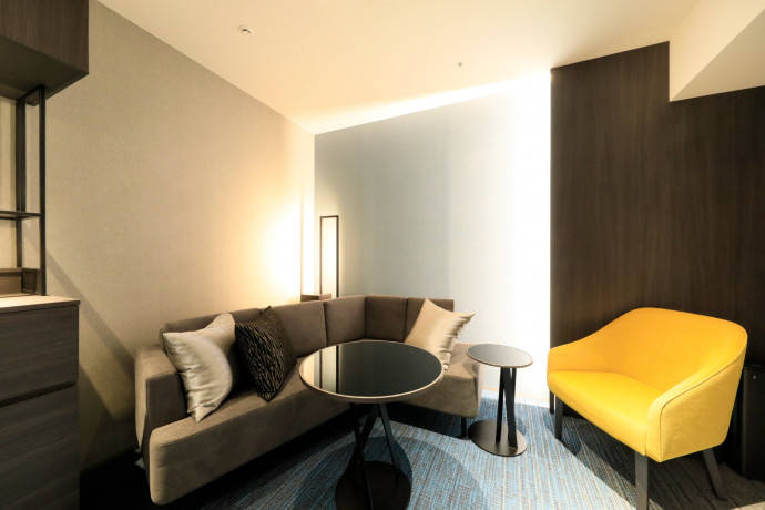 入り口を起点にリビングと寝室の空間が境界分けされており、ゆとりあるホテルステイを愉しむことができます。