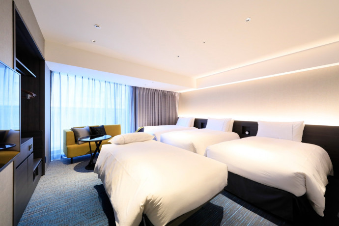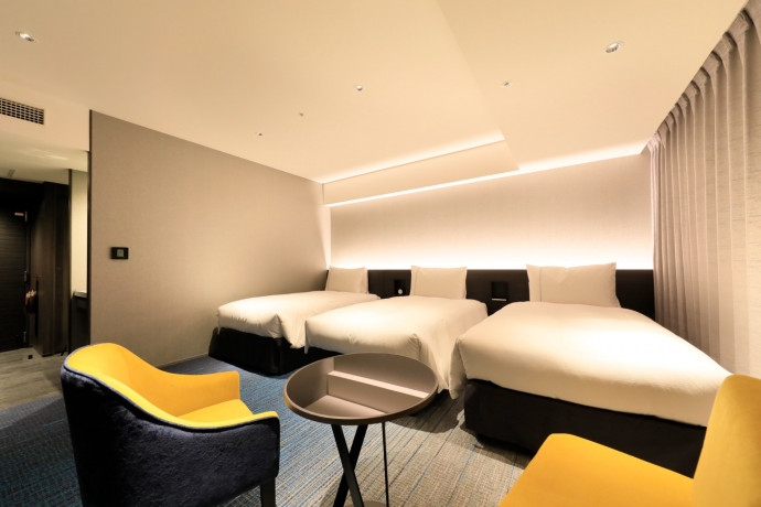 ベッド3台のお部屋です。エキストラベット1台追加で最大4名様までご宿泊いただけます。