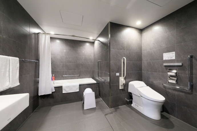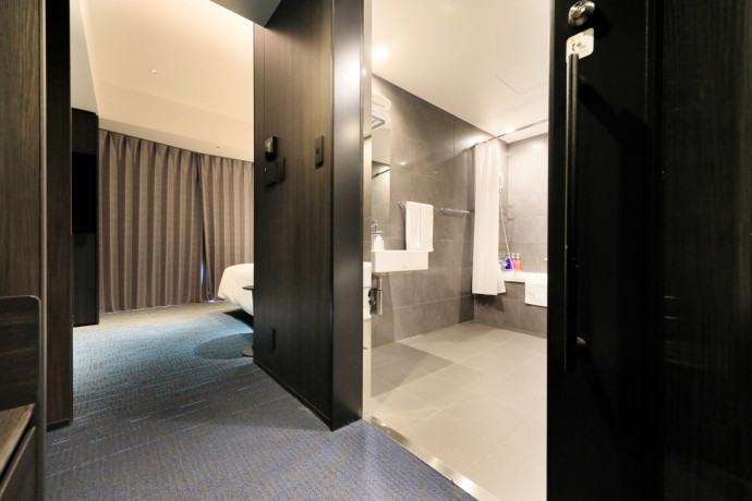浴室・洗面台・トイレをひと区間にまとめ、ご高齢・車椅子ご利用のお客さまのみでなく、全てのお客さまがご利用し易い設計の客室です。