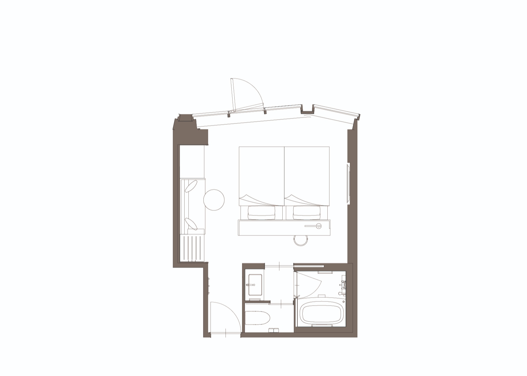 家具や水回りの配置はゲストの居心地を最大限に考え広い客室を実現しました。