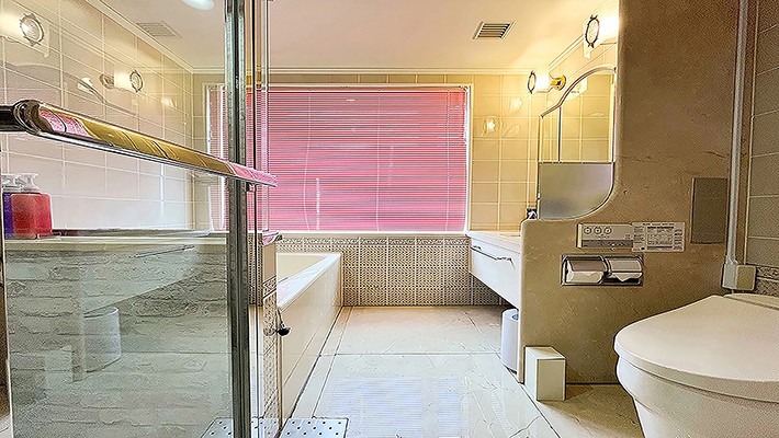 室内はバス・トイレ・洗面台が独立したセパレートタイプ180cm幅のキングサイズベッドでごゆっくりとお休みいただけます。