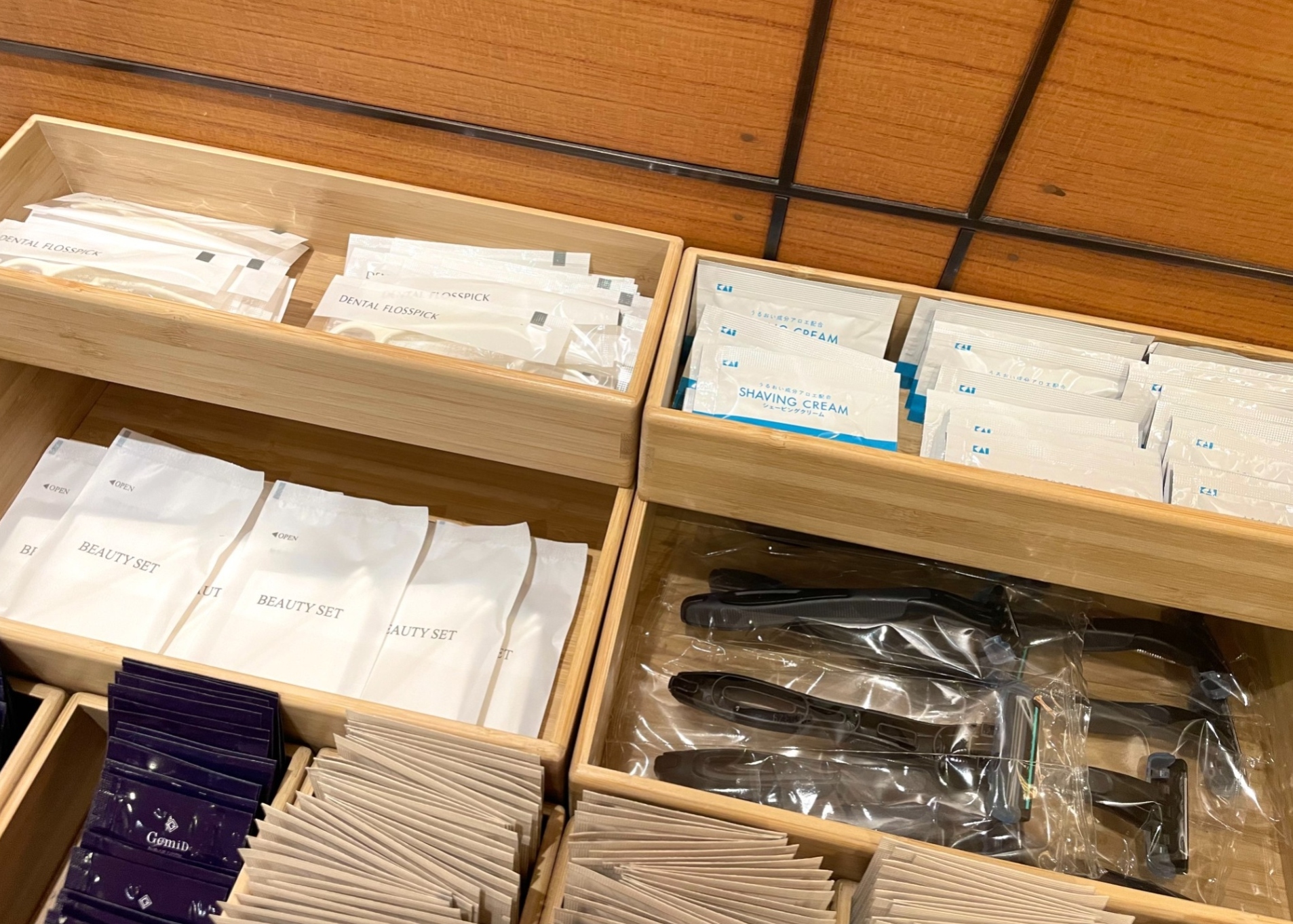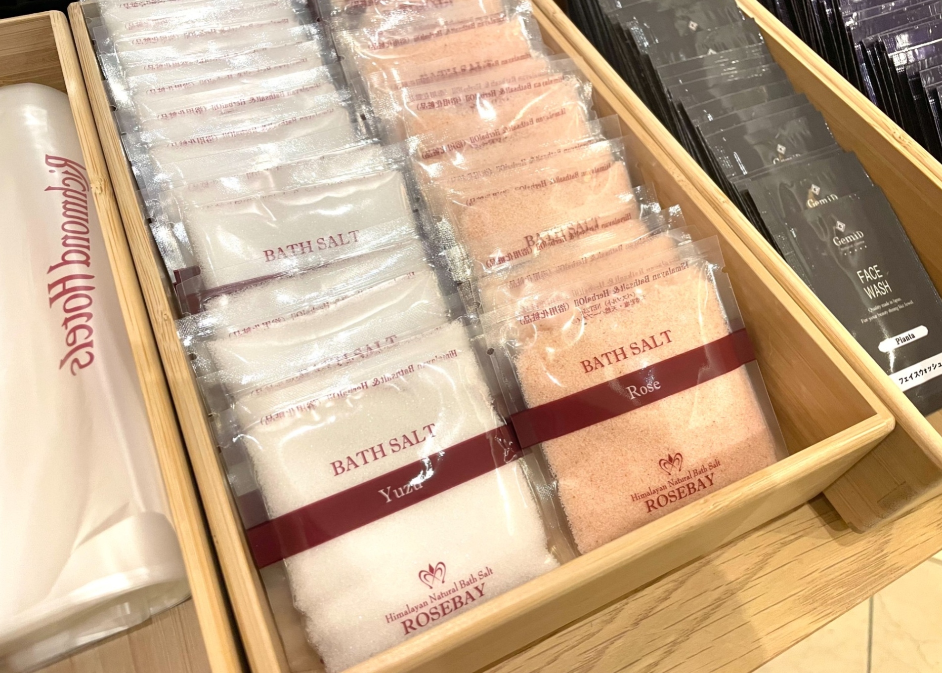 ・ハブラシ ・ヘアブラシ ・カミソリ ・ボディタオル ・シャワーキャップ ・バスソルト