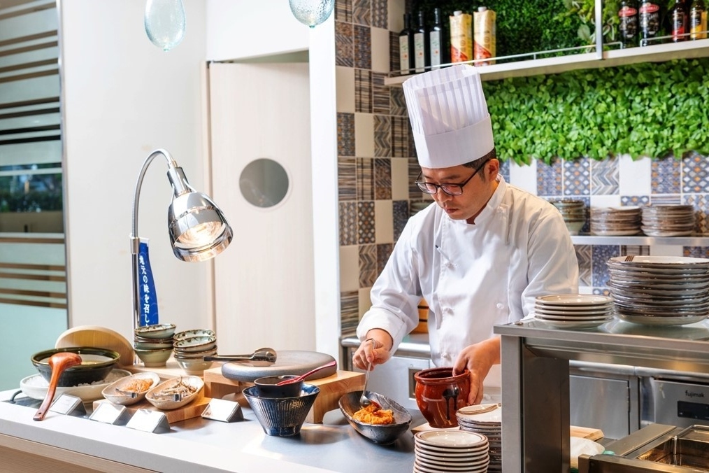 チキン南蛮や冷や汁など、宮崎の郷土料理をはじめとした和洋フルビュッフェスタイルのご朝食をライブキッチンにてご提供いたします。