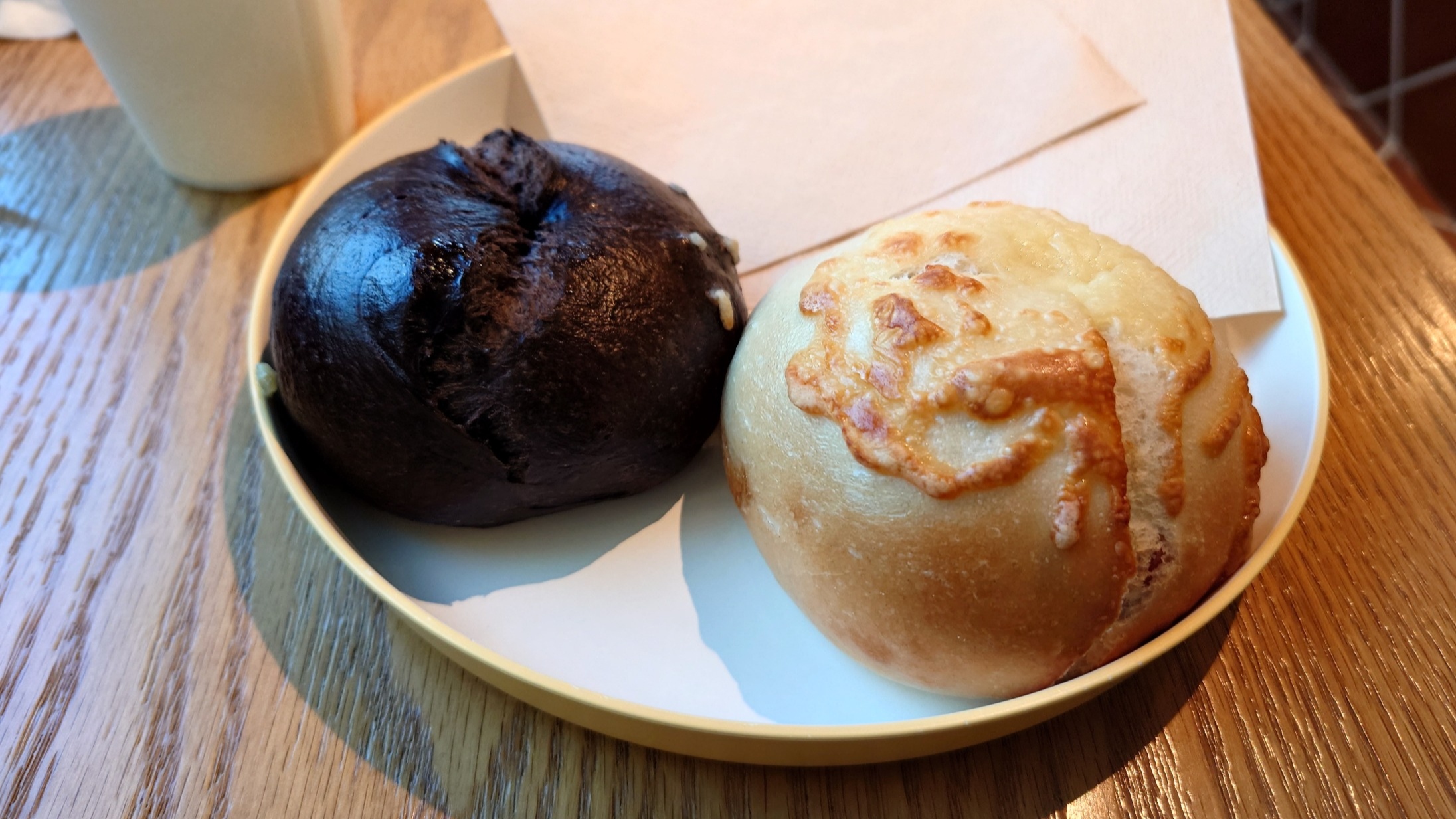 今回は定番メニューの『プレーン ハムしそチーズ』と、日替わりメニューから『ブラックココア カスタードチョコバナナ』の計2品をいただきました。