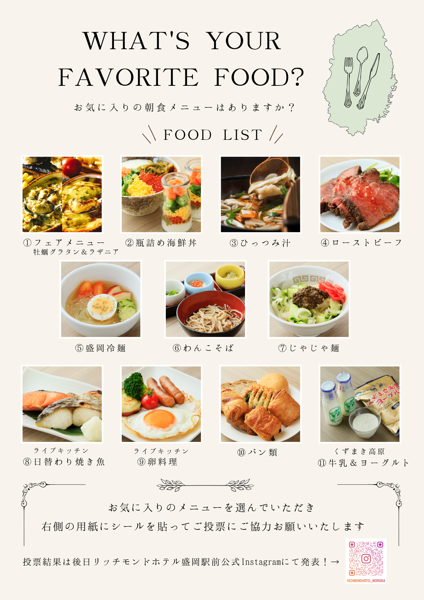 盛岡駅前では10月1日より1か月間、お気に入りの朝食メニューの投票を行っております🌤