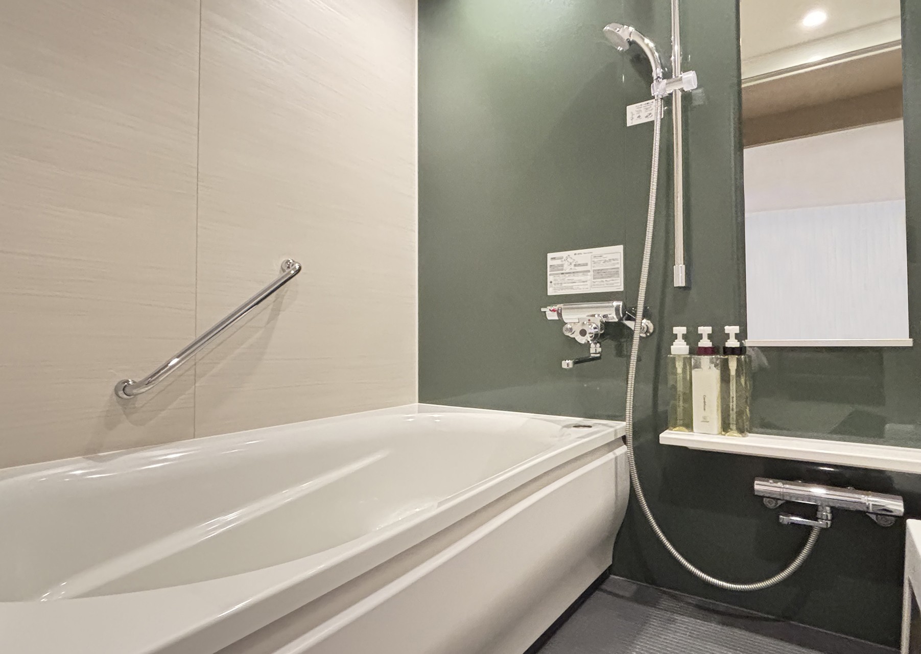 また、全客室にはお風呂のお湯が設定した湯量で止まる、自動定量止水を設置しております。