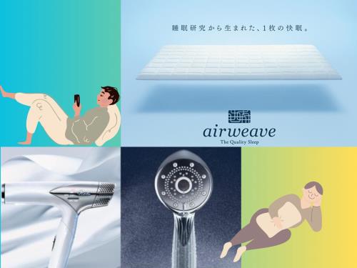 リファのシャワーヘッドやエアウィーヴ社製のマットレスを装備したリラクゼーションルームに追加料金なしでお泊りいただけます。