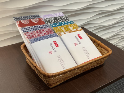 プチギフトの手ぬぐいはいくつか種類がございますのでチェックインの際にお好きなものをお選びくださいませ。