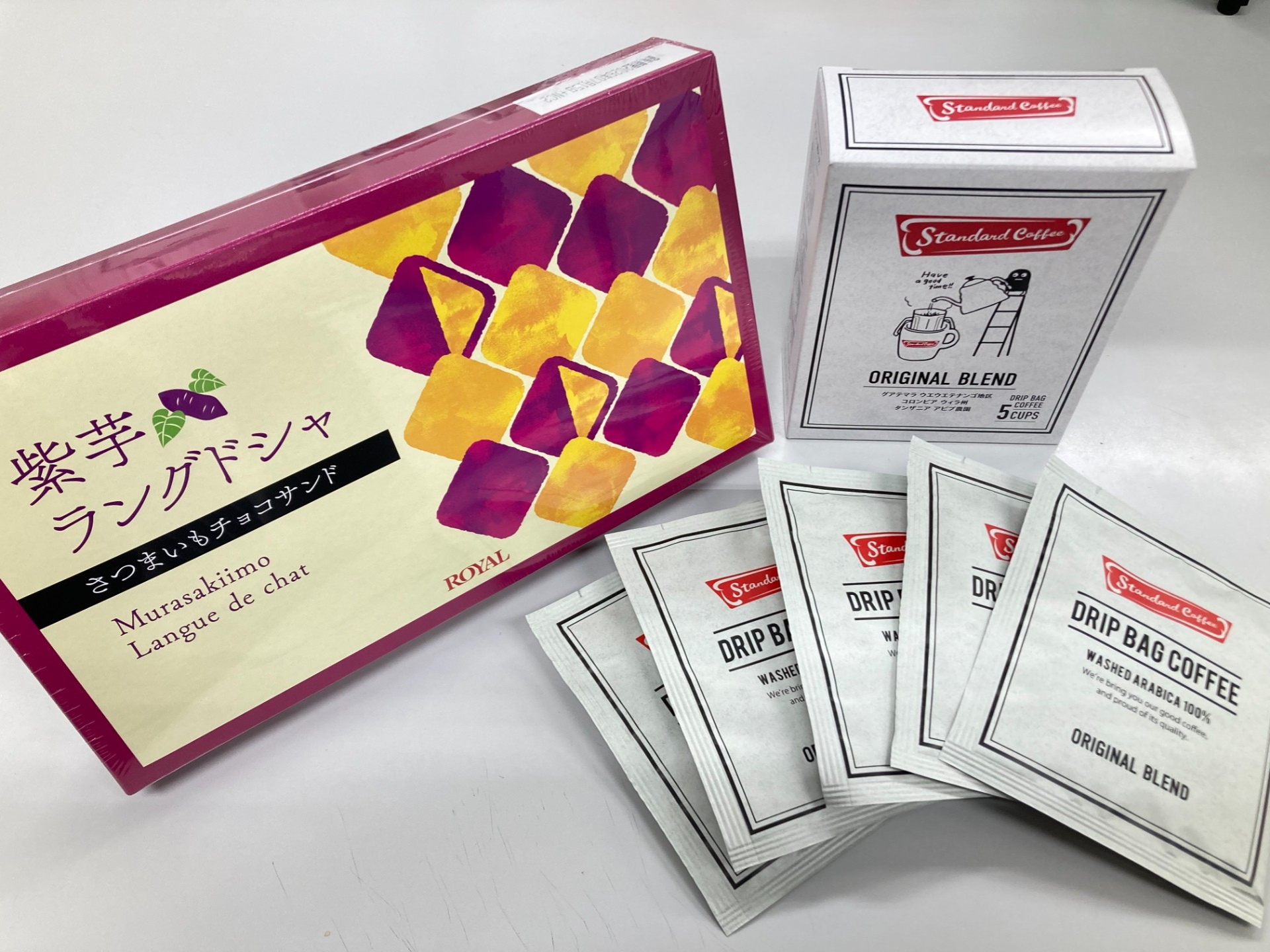 特にロイヤル自慢の「紫芋ラングドシャ」は濃厚な味わいが楽しめるクッキーとなっており大変オススメです♪是非、1度お試しくださいませ。(数に限りがございますので、無くなり次第終了となることご容赦下さいませ。)