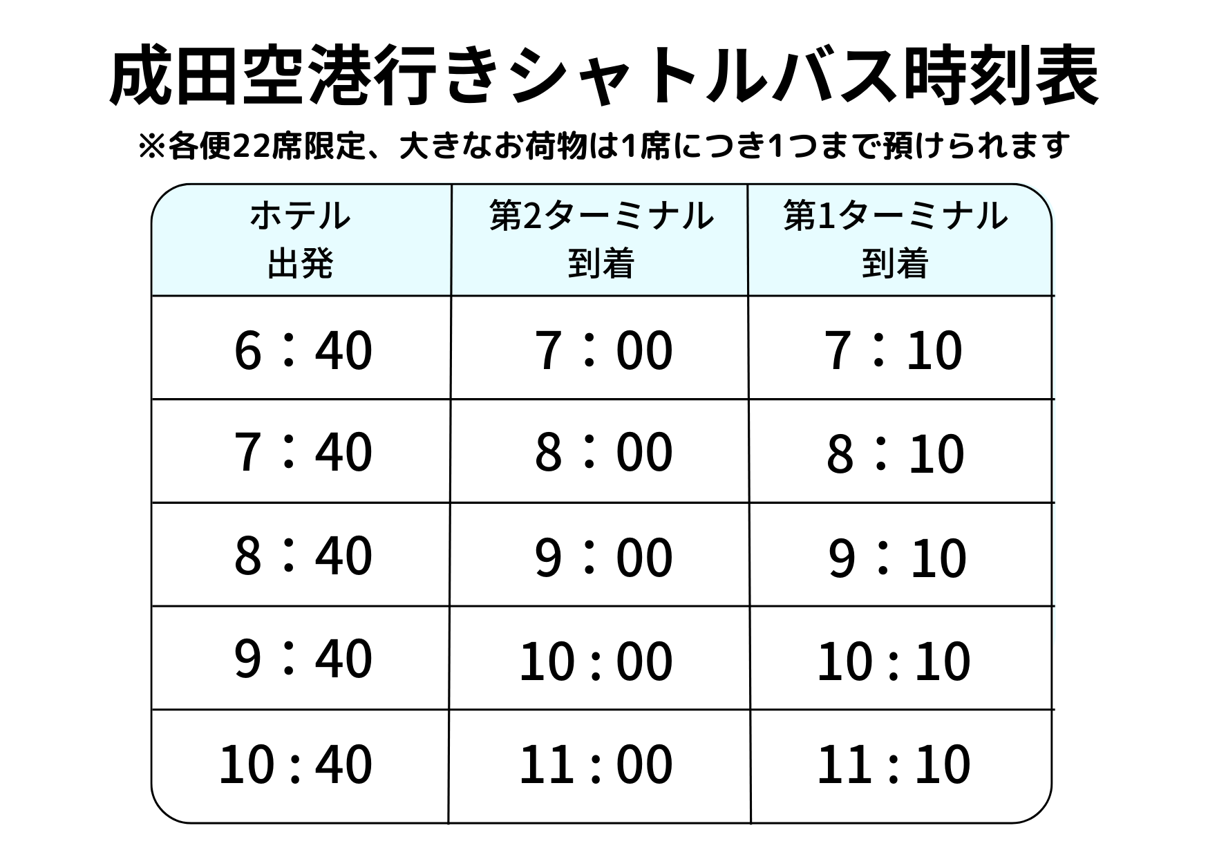 - 成田空港行き片道シャトルバス 午前中のみ