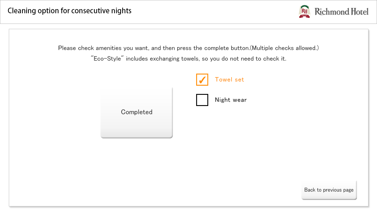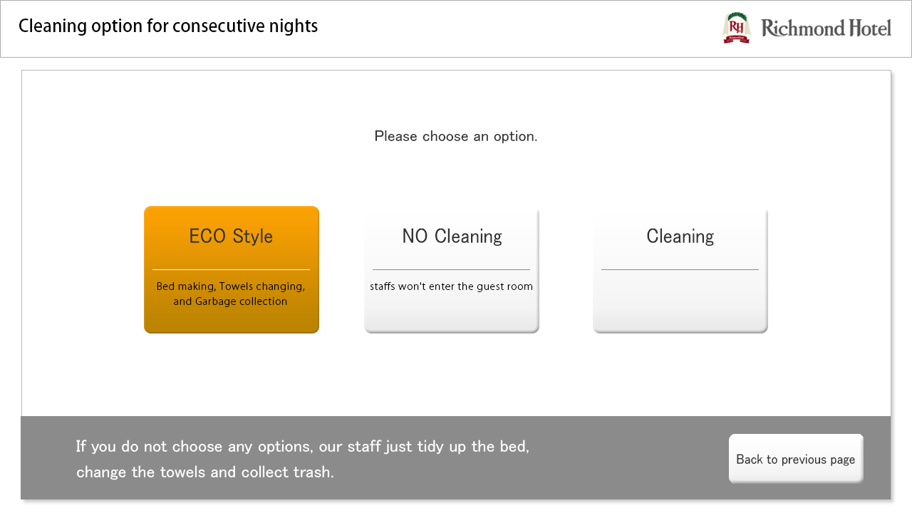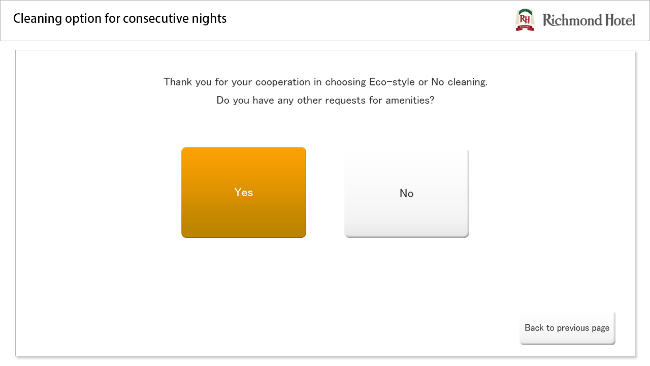 ③When you select “ECO Cleaning” or “No Cleaning”, Select “Yes” if you need some amenities.