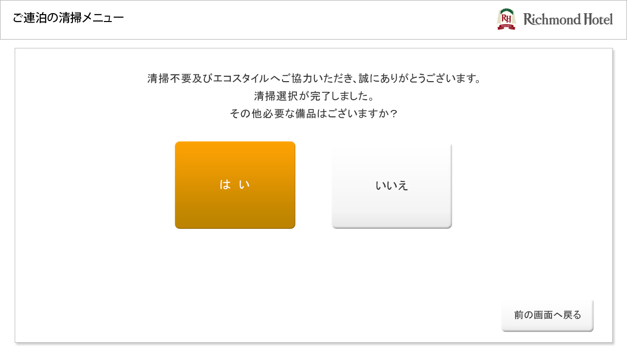 ③エコスタイル・清掃不要をご選択の場合、 ご希望の備品がある場合は「はい」を選択
