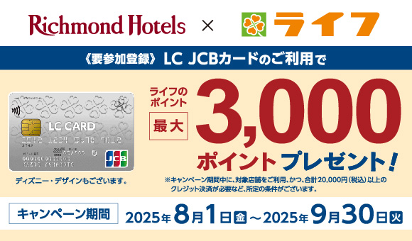 スーパー「ライフ」のクレジットカード「LC JCBカード」の会員様限定キャンペーンを開催いたします。