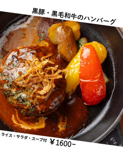 - レストラン夜光杯おすすめランチ「黒豚・黒毛和牛のハンバーグ」