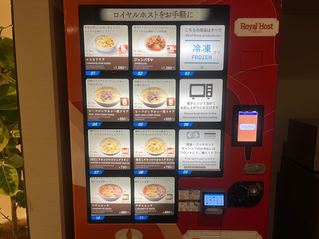 ロイヤルグループのフローズンミールをお召し上がりいただける自動販売機をご用意しております。