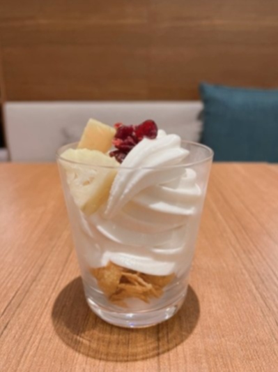 朝食メニューのシリアルやフルーツと合わせてパフェ風に。