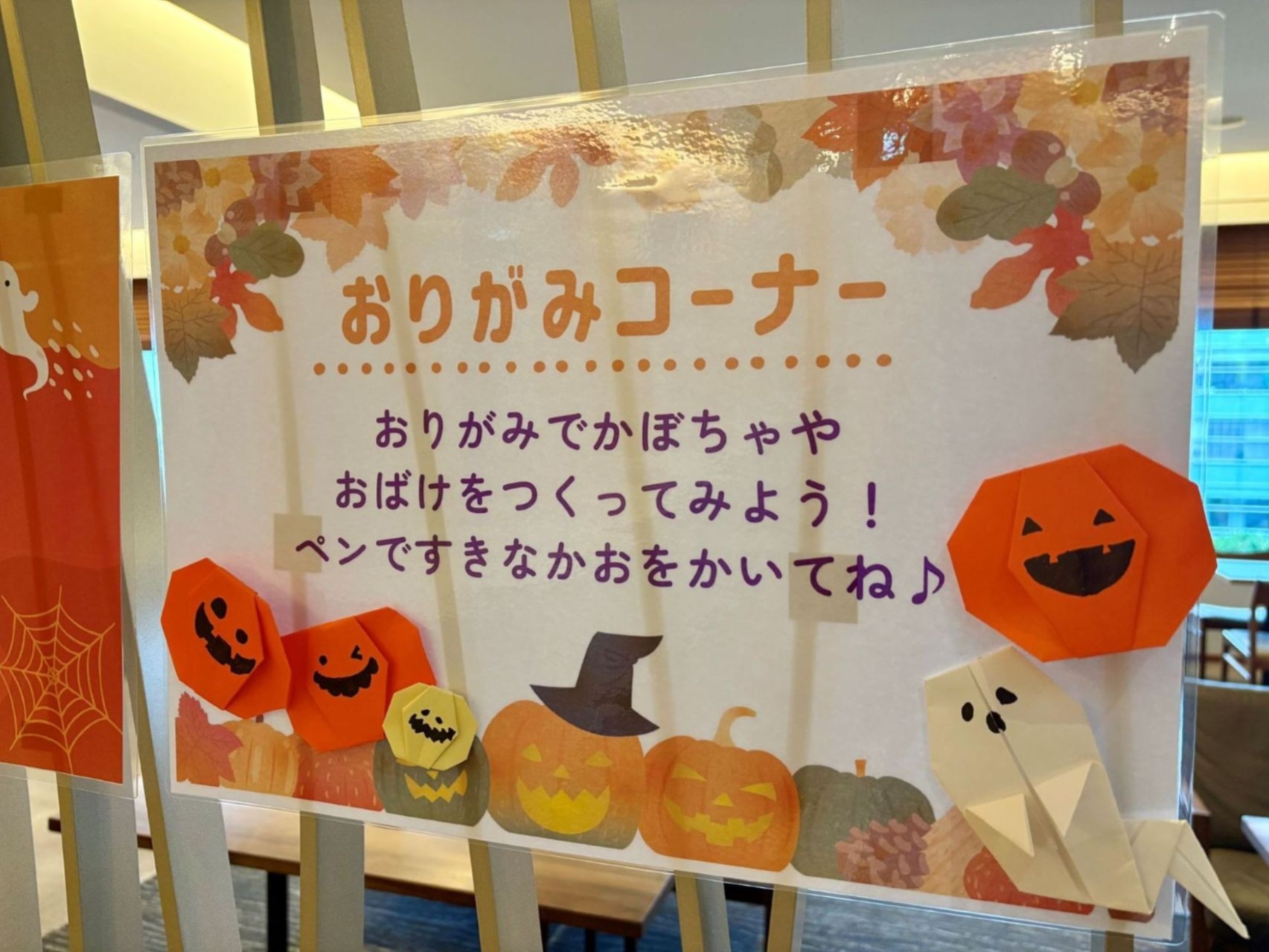 折り紙コーナーもございますので、かぼちゃやおばけを作ってハロウィンをお楽しみくださいませ(o^―^o)
