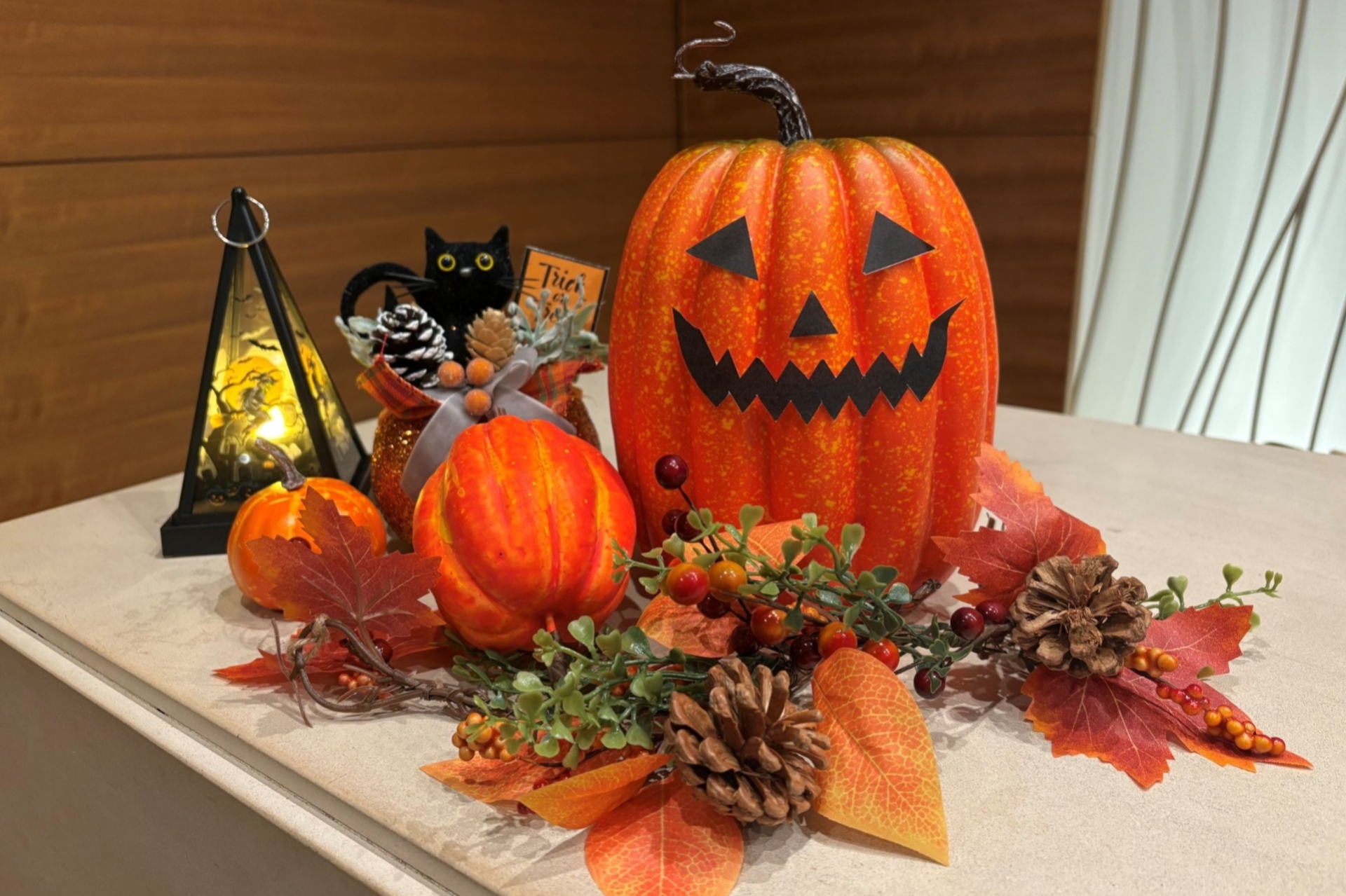 本日よりフロントにハロウィンの装飾をいたします。