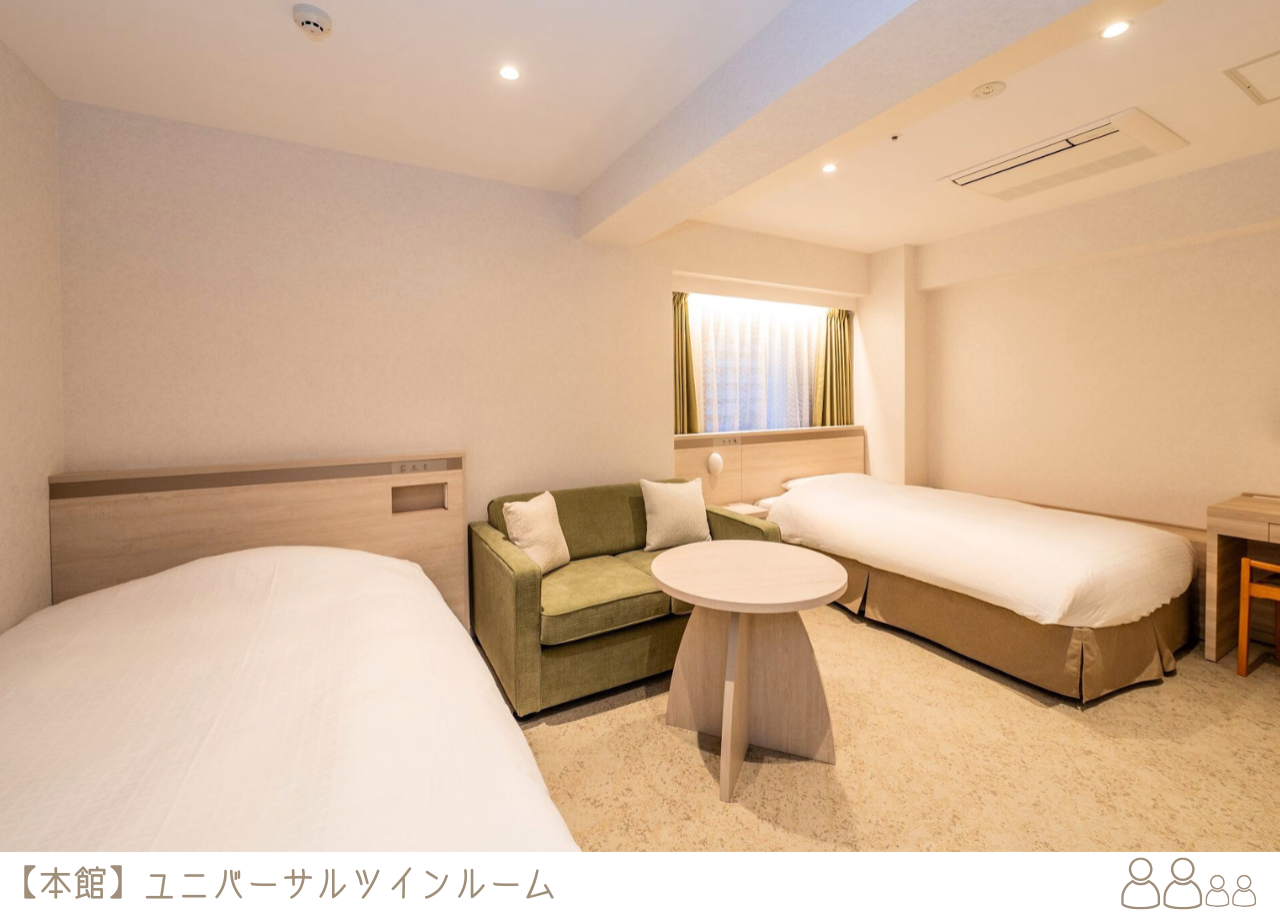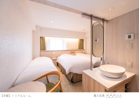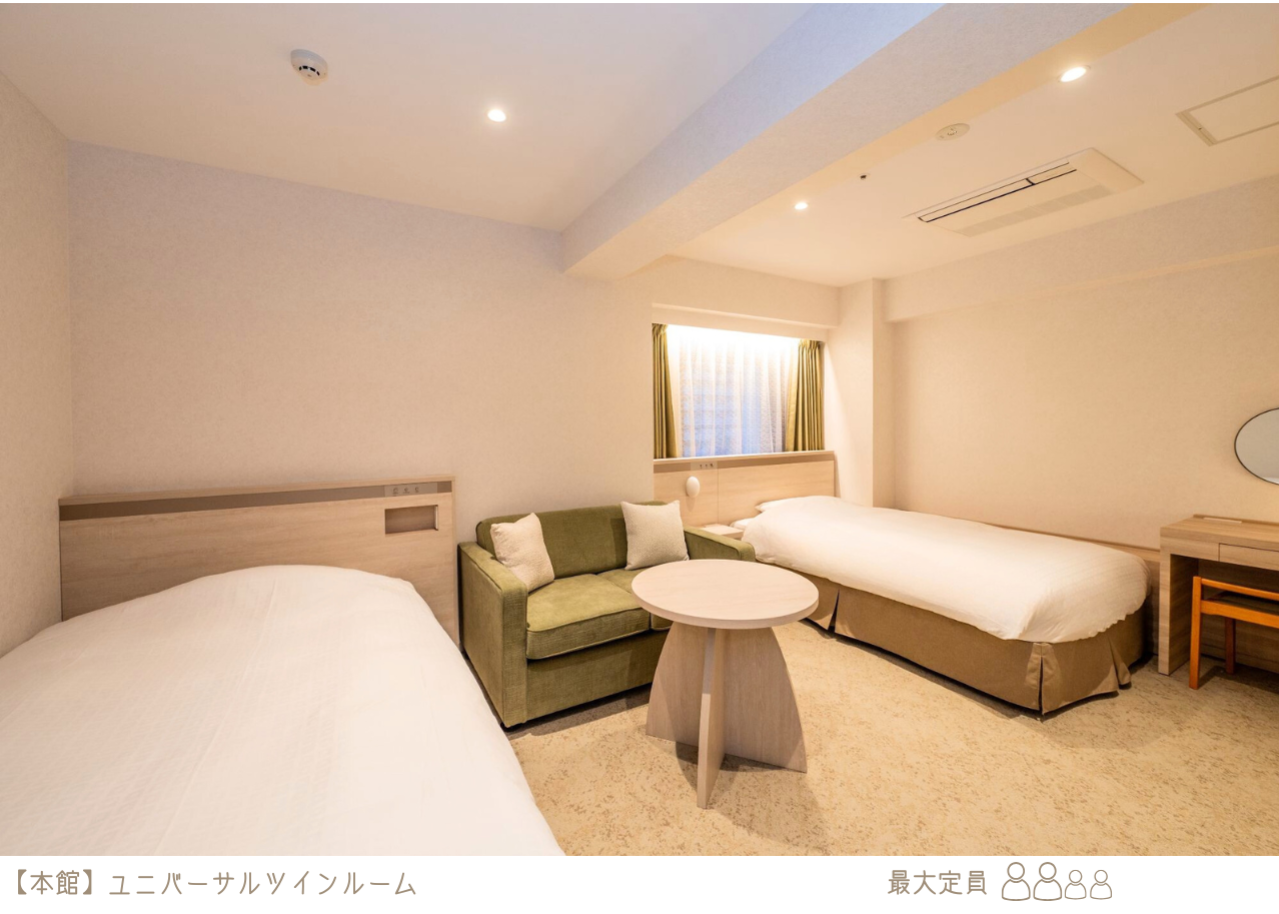 ≪大人1名+お子さま3名≫大人2名で検索⇨各ツインルームをご予約ください。
