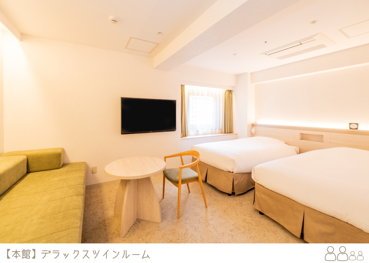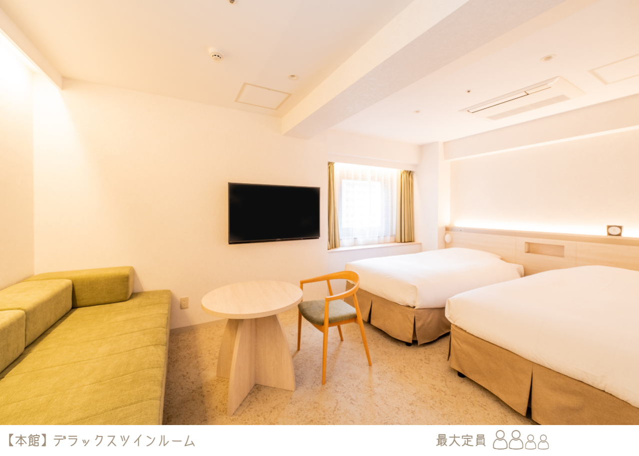 ダブルルームやツインルーム、大人4名様にてご滞在いただけるお部屋もご用意しております。