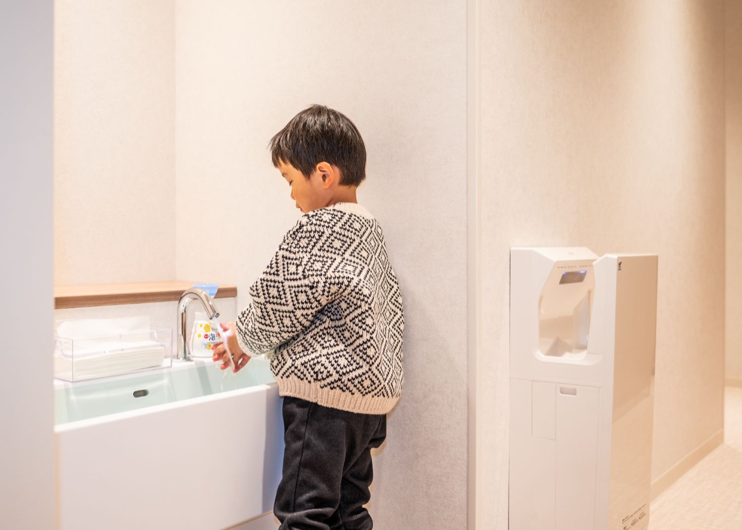 リラックスエリア・キッズスペース横には、小さなお子さまの背丈に合わせたキッズトイレや