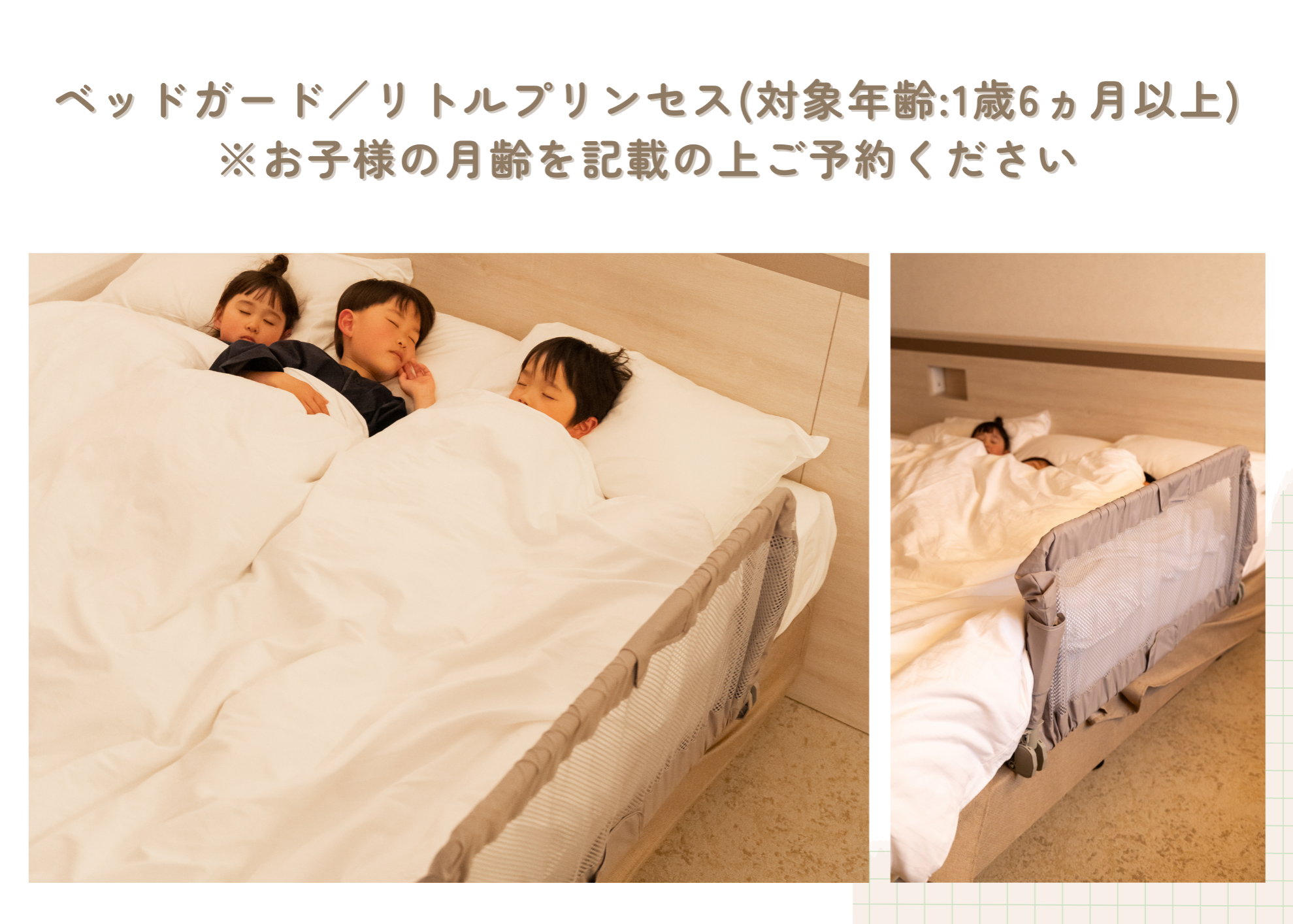 ベッド1台につき、小学6年生までのお子さま1名様の添寝無料