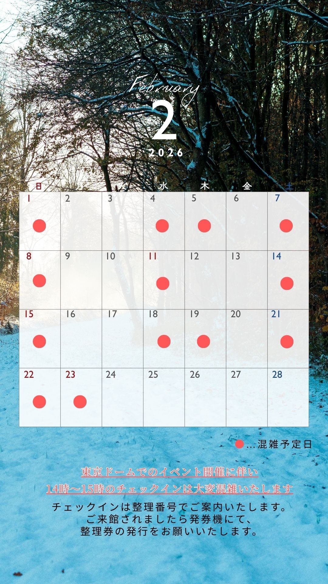 東京ドームでのイベント開催に伴い14時~15時のチェックインは大変混雑いたします。