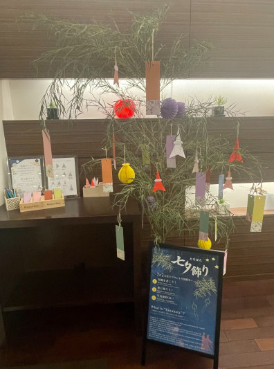夏の思い出づくりにぴったりな七夕限定の笹飾りをロビーにご用意しております